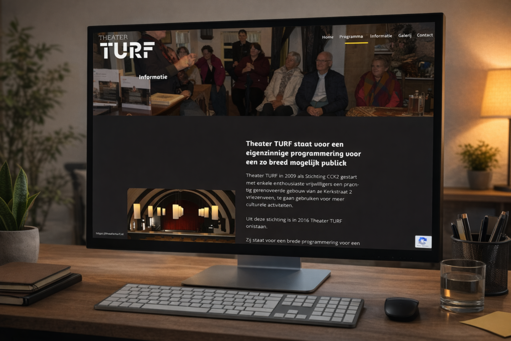 ImperCode ontwikkelde een overzichtelijke en gebruiksvriendelijke website die Theater Turf ondersteunt in hun promotie en communicatie. De website is ingericht als centraal platform waar bezoekers snel inzicht krijgen in aankomende activiteiten en waar kaartverkoop logisch is geïntegreerd.